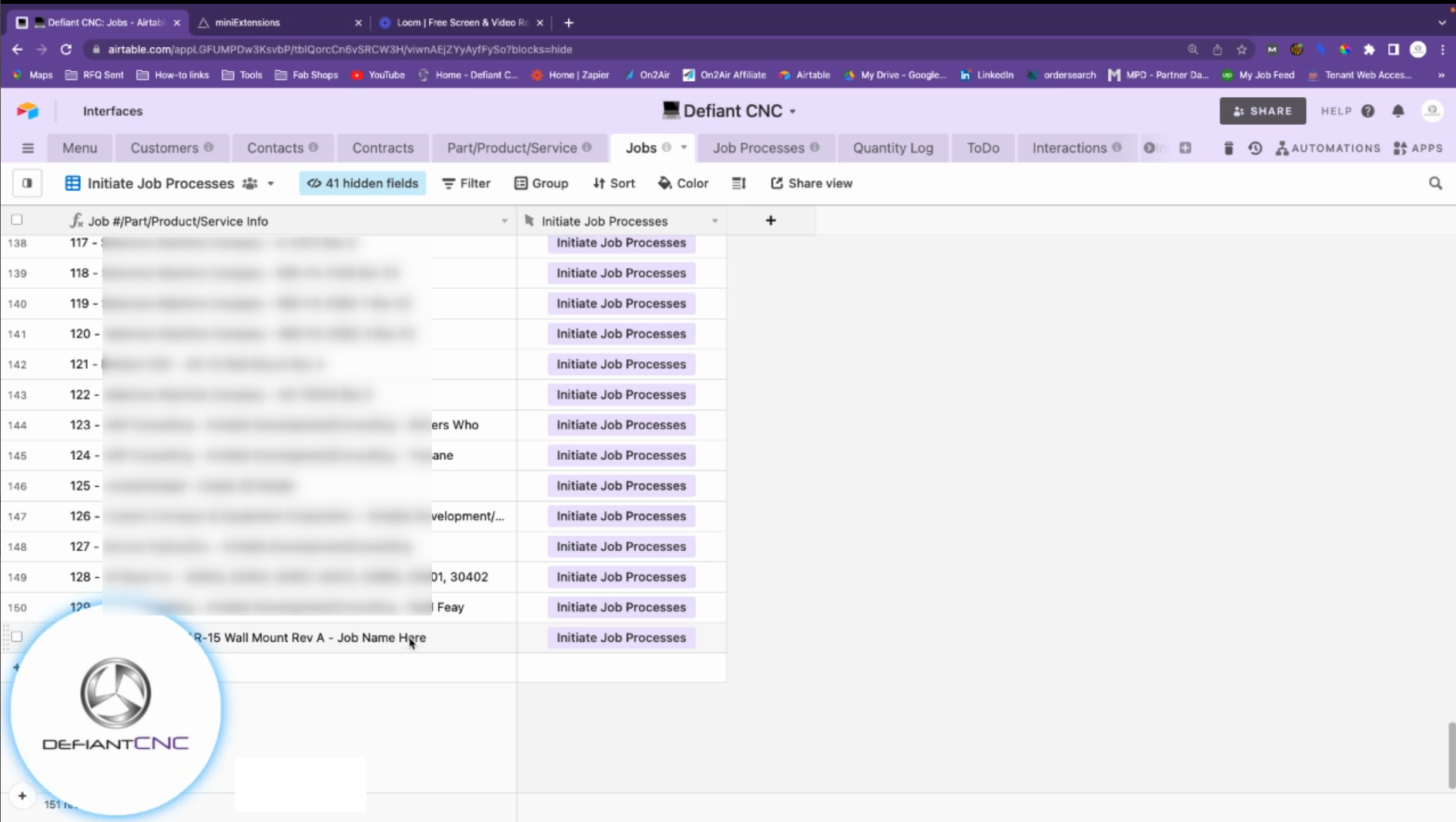 Defiant CNC Founder and CEO Jeremy Taylor created a robust system in Airtable that stores data about their machining equipment, supplies, diagrams, and other information related to manufacturing parts.