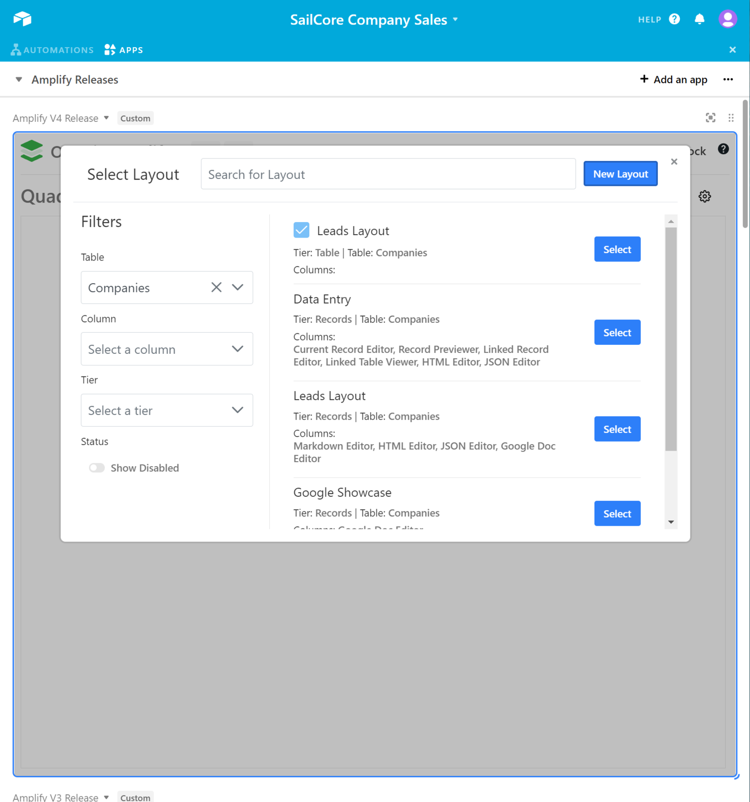 Layouts contain your Block Views for editing and viewing your Airtable records.