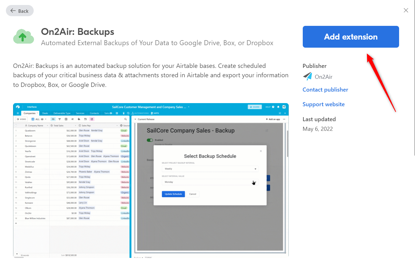 Try it out now with On2Air Backups – an extension that creates automated, scheduled backups of your Airtable data.
