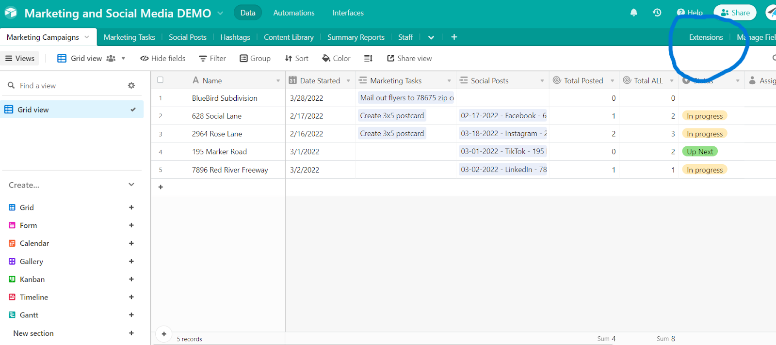 Airtable Extensions extend the functionality of your Airtable bases. They introduce new ways of building and using your data.