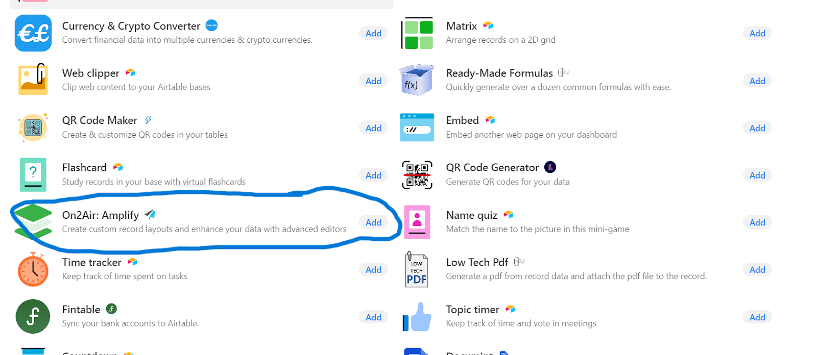 There are extensions for a variety of uses and needs. You can browse through the list of Airtable Extensions below. Click Open Extension to open it in the Airtable Marketplace.