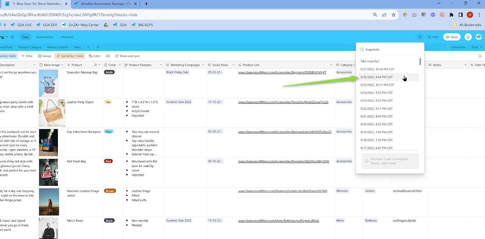 Airtable snapshots are a nice safety net when it comes to data mishaps. They automatically back up your entire Airtable base, and while the exact schedule remains a bit mysterious, you can access previous data. For added data security and backup best practices, try On2Air Backups for Airtable. The powerful backups app complements Airtable snapshots, making sure your data remains secure and yours at all times.