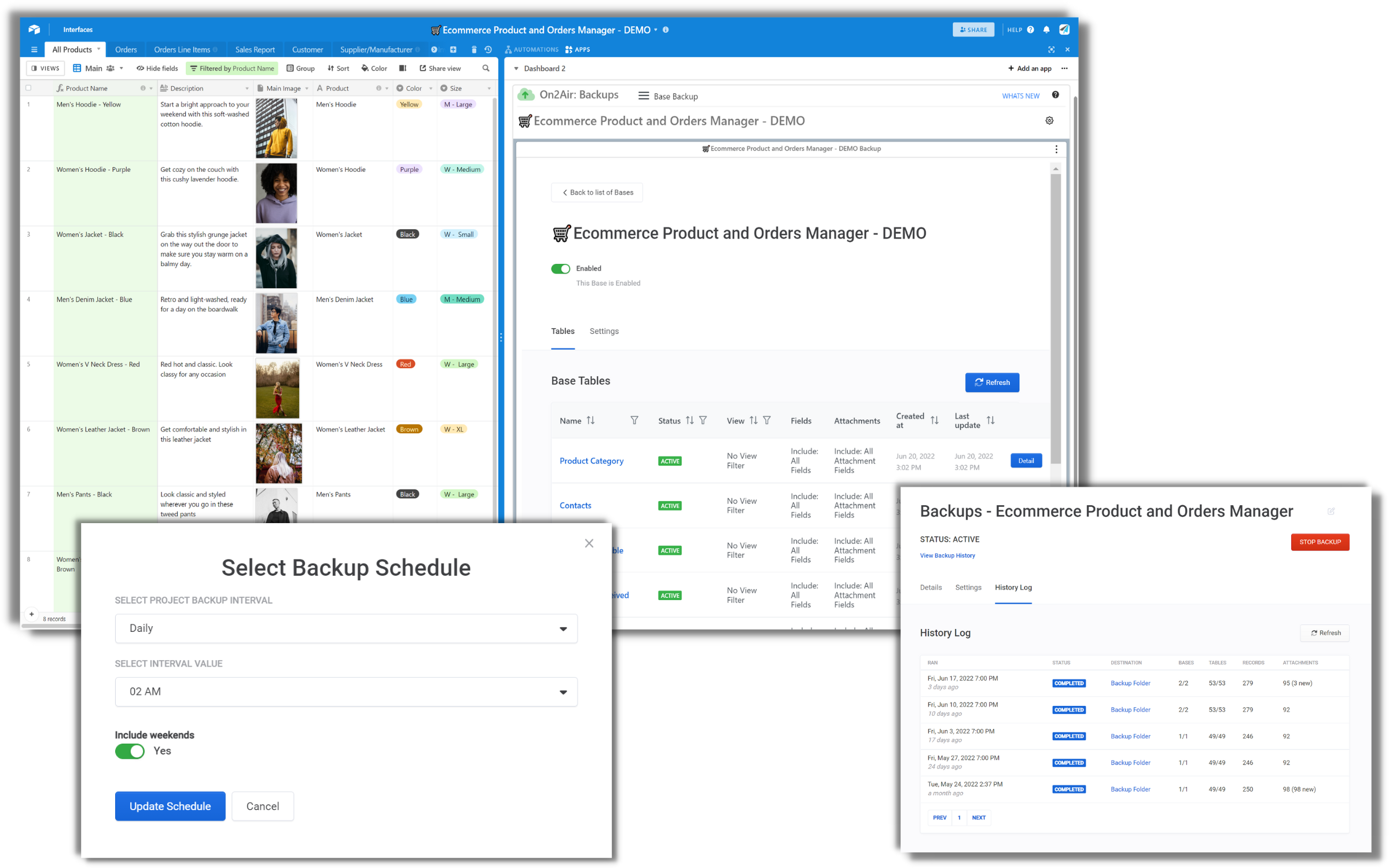 ✔ On2Air Backups – An Airtable extension app that creates scheduled automated backups of critical business data stored in Airtable and exports the data and attachments to Google Drive, Dropbox, or Box.