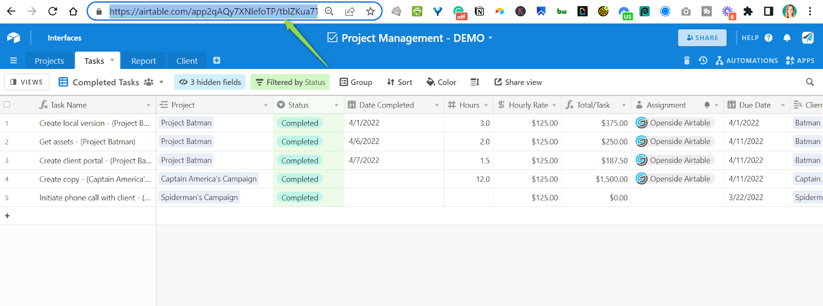 - View project tasks for your consulting clients