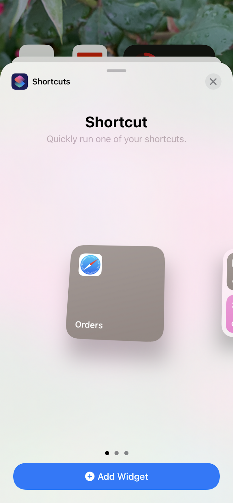 Now that you have the Shortcut setup, you need to add the home screen widget button.